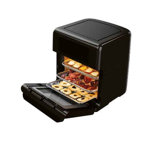 Con una potencia de 1800W y diez programas preestablecidos, esta freidora de aire multifuncional permite freír, asar y deshidratar alimentos de forma saludable utilizando un sistema de circulación de calor sin aceite.